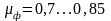 А=1,8; μ=0,34; φ=0,55.