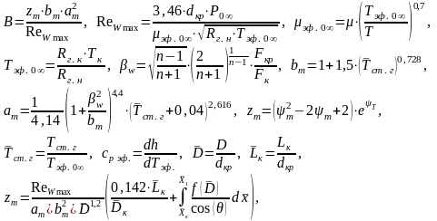 Далее ориентировочно задаются значения газовой стенки по длине канала и определяются значения конвективной составляющей по формулам (формулы приведены для цилиндрической нескоростной камеры):
