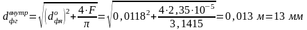 Найдём внешний диаметр двухкомпонентной форсунки пристеночного слоя: