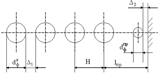 Определим шаг между форсунками Н: