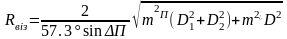 Rвиз = 2 ∙ 0,7/57,3/Sin35 √ 1,75 ² + 2,2 ² + 1,25² = 0,18 мили = 1,8 кбт