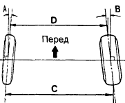 Отрегулируйте величину схождения путем поворота левого и правого наконечников рулевых тяг на одинаковое число оборотов. Cхождение при регулировке: