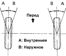 Модели с усиленной подвеской:Внутреннее колесо: 40°00' ± 2°Внешнее колесо: 34°00' ± 2°