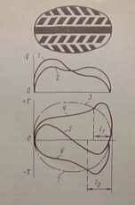 =t/ q. Если она равна или больше коэффициента сцепления шины с дорогой, то начинается проскальзывание. Это главная причина износа протектора. В различных точках контакта напряженность t неодинакова. Она зависит от условий движения, нагруженности шины, углов установки колес, величины давления воздуха в шине и др. (рис. 1.6.2).