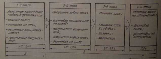 Рис. 1.6.14. Этапы и продолжительность процесса замены шин
