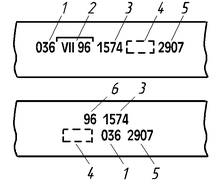 - цифры и буквы для обозначения даты (месяца и две последние цифры года) и других данных (цифры и буквы должны быть высотой от 6 до 10 мм, согласно действующим стандартам, техническим условиям и чертежам);