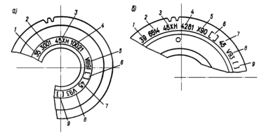 При замене зубчатого колеса или венца на них наносятся знаки и клейма предприятия, производившего замену зубчатого колеса (венца) (рисунок 8, позиции 7 – 9).
