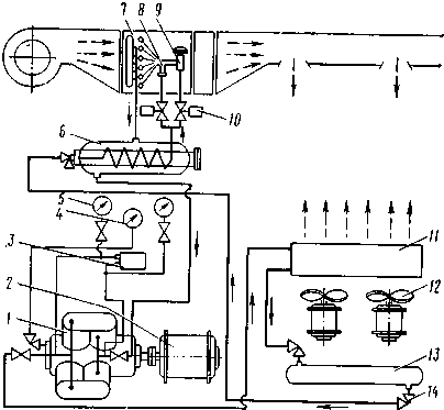 | 2 – электродвигатель; | 9 – терморегулирующий вентиль; |