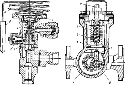 Регуляторы заполнения испарителя предназначены для автоматического регулирования подачи хладагента в испаритель и действуют в зависимости или от температуры всасываемых паров (терморегулирующие вентили), или от давления этих паров (барорегулирующие вентили).