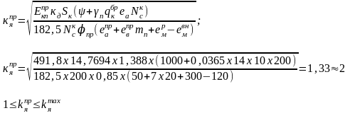 = 1.3х200х[ 1х0,85 + 5х(1,2 – 1) + 0,04х2] – 10 = 491,8 м