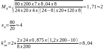 Екп = 1,3х200х [ 1х0,85 + 2х0,90 + 5х (1,2 – 1) + 2х0,04х 2 ] – 10 = 980,6 (м)