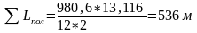 = 1,3х200х(2х0,9 + 0,04х2) = 488,8 м