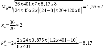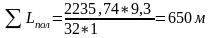 Екп = 1,3х [ 410х1х0,85 + 412х2х0,90 + 5х580х (1,2 -1)+ 0,04х (401 + 412)х 2 ] – 10 = 2235,7 (м)