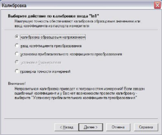 Затем выбрать вариант калибровки. Для калибровки образцовым напряжением (током, давлением) выбрать соответствующий пункт.