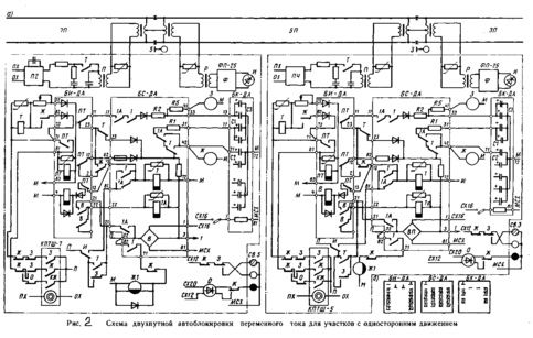 На участках с электротягой переменного и постоянного тока используют автоблокировку в комплексе с автоматической локомотивной сигнализацией АЛС. При применении устройств АЛС необходимо передавать сигнальные показания путевых светофоров на локомотив. Наиболее удобно и экономично это сделать, если рельсовую цепь использовать не только для контроля состояния блок-участка, но и как канал связи для устройств автоблокировки и АЛС. По этому каналу можно передавать различные сигнальные приказы для работы автоблокировки без применения линейных проводов. Наиболее просто, оказалось, использовать рельсовые цепи не с импульсным, а с кодовым питанием. Для кодирования был выбран числовой код, основным признаком которого является число импульсов, передаваемых в кодовом цикле.