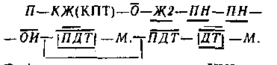После полного освобождения участка 5Па от светофора 3 в рельсовую цепь этого участка подается код КЖ. От этого кода на переезде работают реле НИ и НИ1. При импульсной работе этих реле через конденсаторный дешифратор срабатывает реле НП, а вслед за ним реле НПТ Последнее, притягивая якорь, переключает релейный конец рельсовой цепи 5П на питающий. Тыловыми контактами реле НПТ отключает от рельсовой цепи реле ИДИ, а фронтовыми подключает источник питания. Одновременно фронтовым контактом реле НПТ включается цепь реле НТ, которое работает как повторитель реле НИ в режиме кода КЖ. Переключая контакт в цепи трансформатора П, реле НТ транслирует код КЖ в рельсовую цепь 5П. Некоторое время с обоих концов рельсовой цепи 5П поступают коды КЖ, вырабатываемые трансмиттерами КПТ разных типов. В интервале кода КЖ, подаваемого с релейного конца, от кода КЖ, подаваемого с питающего конца, у светофора 5 работает реле И. Через дешифратор возбуждаются реле Ж, Ж1 и Ж2. Реле Ж1, размыкая тыловой контакт, выключает реле ОИ. Последнее размыкает цепи кодирования у светофора 5 и с релейного конца рельсовой цепи 5П прекращается трансляция кодов. Из рельсовой цепи 5Па продолжается кодирование рельсовой цепи 5П с ее питающего конца. Фронтовыми контактами реле Ж2 замыкается цепь извещения, на переезде возбуждаются реле НИП и ПНИП и все цепи управления переездной сигнализацией возвращаются в исходное состояние.