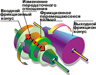 Кстати, существовавшая до недавнего времени проблема передачи большого крутящего момента уже решена конструкторами "Ауди", применившими "ремень", стальные звенья которого связаны между собой сложным переплетением и способны передавать до 280 Н.м! А японцы предполагают в недалеком будущем обойтись вообще без ремня, применив конический фрикционный вариатор.
