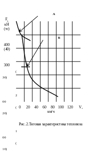 Тяговая характеристика тепловоза 2ТЭ116 (рис.2) построена по электромеханическим характеристикам тягового электродвигателя ЭД-118А для стандартных атмосферных условий.