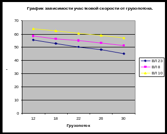 По результатам расчетов строим график зависимости участковой скорости для грузопотока Гн=12,16,18,20,22,24,26,28,30. (рис 2.1)