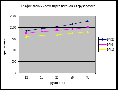 По результатам расчетов строим график зависимости парка вагонов для грузопотока (рис 2.2) Гн=12,16,18,20,22,24,26,28,30.