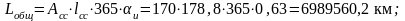| Общий пробег | Lобщ | км | 6989560,2 |