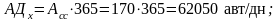 | 14. Автомобиле-дни в хозяйстве | АДх | авт/дн | 62050 |