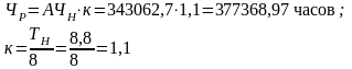 Так как Фрр различен для ремонтных рабочих, работающих в нормальных условиях и ремонтных рабочих с тяжелыми и вредными условиями труда, будем считать, что 20-25% от ∑Т выполняется в тяжелых и вредных условиях.