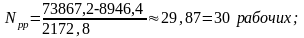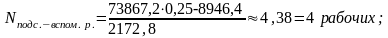 При определении численности подсобно-вспомогательных рабочих трудоемкость подсобно-вспомогательных работ принимается в пределах 25-30% от ∑Т.