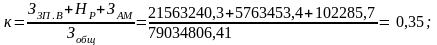 к – коэффициент, учитывающий отношение величины затрат на заработную плату, накладных расходов и амортизационных отчислений к общей сумме затрат;