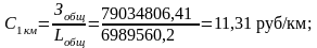 НТОиР – норма затрат на техническое обслуживание и текущий ремонт подвижного состава в рублях на 100 км пробега.
