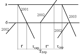 τскр = tоп + tвх + 0,06 * (lп / 2 vпр), мин (11)