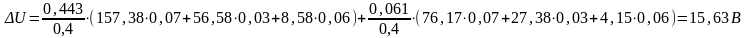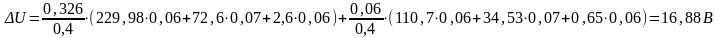 Определяем максимальную потерю напряжения в выбранном проводе (на участке от источника питания до наиболее удалённой от него нагрузки) по выражению (2.1.) и проверяем выполнение условия: