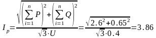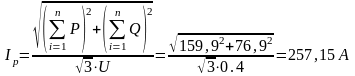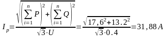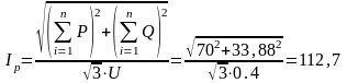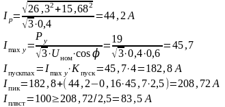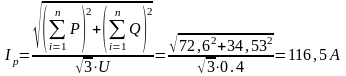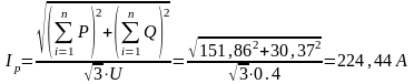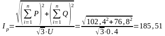 где S – полная мощность на участке, ближайшем к источнику питания, Pi (Qi) – активные (реактивные) нагрузки, подключенные к проводу, и проверяем выполнение условия: