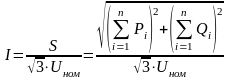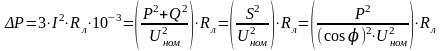 где I,P,Q,S – ток, активная, реактивная и полная мощности, протекающие в линии, Uном, Rл – номинальное напряжение и активное сопротивление линии.