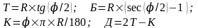 Розрахунок головних точок кривих і прямих ділянок траси виконують по формулах: