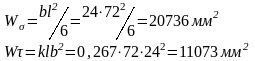 Моменти опру залежать від форми небезпечного січення, в багатьох випадках воно може бути замінене прямокутником з розмірами b і l (мал.5, б). В такому випадку: