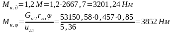В якості розрахункового крутного моменту приймемо менший з двох моментів на карданному валу: визначеного по двигуну Мк.д і по зчепленню ведучих коліс з дорогою Мк.φ.