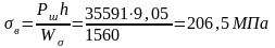 Отримане σв=206,5 в межах допустимих значень [σв]=200...300 МПа.