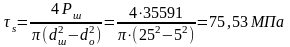 що добре так як τs=75,53 МПа знаходиться в межах [τs]=60…100 МПа.