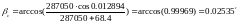 Значення стрілочного кута (Рис.1) - кута між робочою гранню рамної рейки і дотичною, проведеною до робочої грані гостряка в корені навпроти центра обертання, - визначається за формулою: