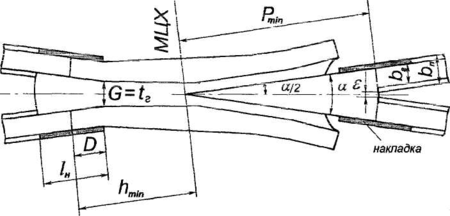 - стиковий зазор у корені, при вкладишево-накладочному кореневому кріпленні приймається 4...6 мм, при гнучких гостряках дорівнює 0;