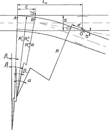 Для рішення рівняння необхідно попередньо задатися частиною невідомих величин. Звичайно радіус перевідної кривої у першому наближенні приймається рівним радіусу гостряка в другій його частині, тобто R=