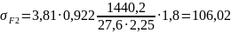 YF2 =3,6- коефіцієнт форми зуба, в залежності від е числа зубів z2
