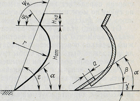 Геометрическими параметрами отвалов являются показанные на рис. угол резания