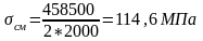 - напряжение, воздействующее в стойке зуба, МПа,