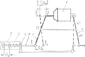 Поршень ТЦ совершает дополнительный ход в процессе торможения вагона за :чет возвратной пружины регулятора рычажной передачи. На рис. 3.9 приведена расчетная схема узла ТЦ 1 вагона для определения приращения хода его поршня от сжатия возвратной пружины 3 в регуляторе 2 при торможении.