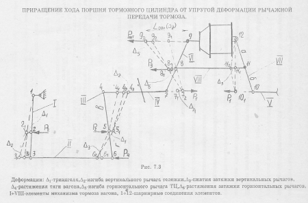 3.8.Вычисление величины деформации элементов рычажной передачи при торможение вагона