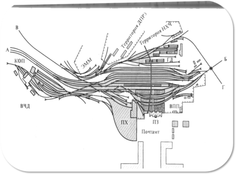 локомотивное хозяйство - рядом с пассажирской технической станцией (техническим парком) между главными путями. В тех случаях, когда по местным условиям такое расположение локомотивного хозяйства невозможно, его допускается располагать рядом с пассажирской станцией сбоку от главных путей, со стороны отправления поездов.