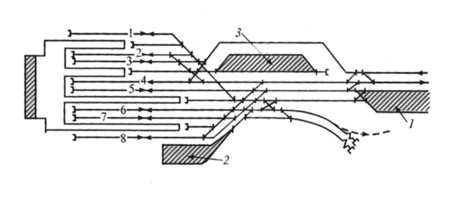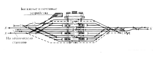 Схема пассажирской станции с тупиковыми приемоотправочными путями: