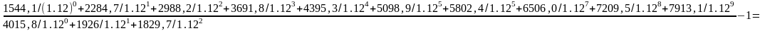 | выплаты | Налог на имущество | 84,37127 | 124,8371 | 163,2796 | 201,7222 | 240,1647 | 278,6073 | 317,0498 | 355,4924 | 393,9349 | 432,3775 | 2591,837 |